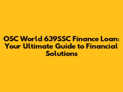 OSC World 639SSC Finance Loan: Your Comprehensive Guide