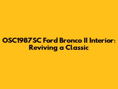 Now, let's get our hands dirty and talk about restoration projects! These projects aim to bring your OSC1987SC Ford Bronco II's interior back to its original glory. From seats to the dashboard, here are some key areas to focus on.