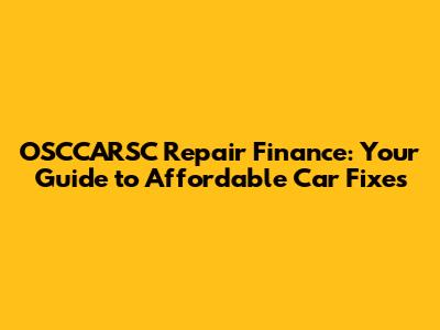 OSCCARSC Repair Finance: Your Guide To Affordable Car Fixes