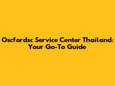 Oscfordsc Service Center Thailand: Your Go-To Guide
