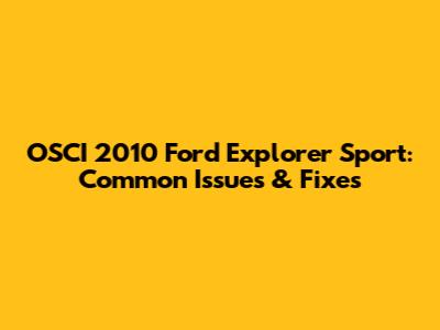 OSCI 2010 Ford Explorer Sport: Common Issues & Fixes