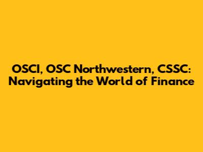 Hey guys! Let's dive into the exciting world of finance through the lens of OSCI, OSC Northwestern, and CSSC. Whether you're a seasoned investor or just starting to explore the financial landscape, understanding these organizations and their roles can provide valuable insights. Let's break down what each of these entities does and how they contribute to the broader finance ecosystem.