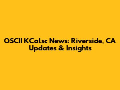 OSCII KCalsc News: Riverside, CA Updates & Insights