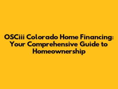 OSCiii Colorado Home Financing: Your Guide