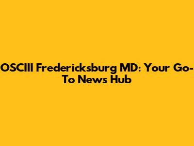 OSCIII Fredericksburg MD: Latest News & Updates