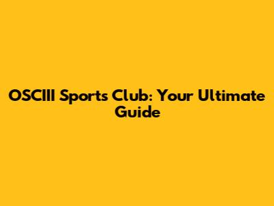 OSCIII Sports Club: Your Ultimate Guide