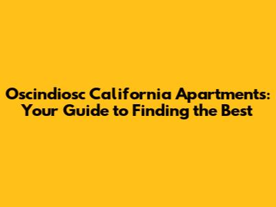 Oscindiosc California Apartments: Your Guide To Finding The Best