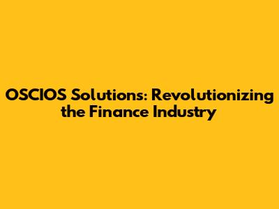 OSCIOS Solutions: Revolutionizing The Finance Industry