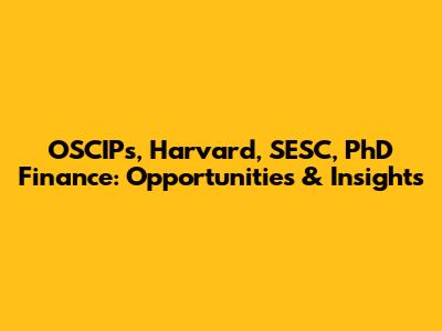 OSCIPs, Harvard, SESC, PhD Finance: Opportunities & Insights