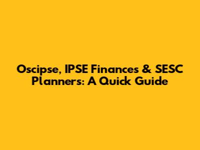 Oscipse, IPSE Finances & SESC Planners: A Quick Guide