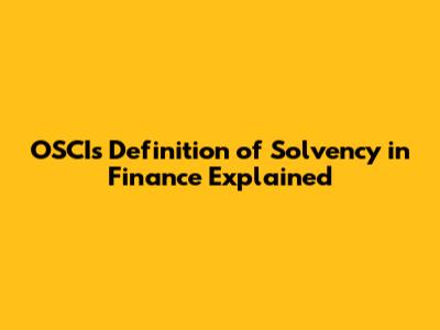 OSCI's Definition Of Solvency In Finance Explained