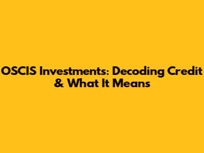 OSCIS Investments: Decoding Credit & What It Means