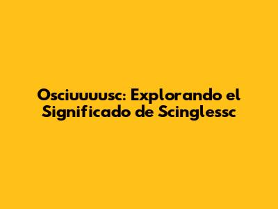 Osciuuuusc: Explorando El Significado De Scinglessc