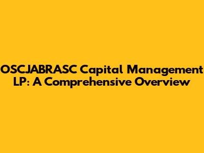 Hey there, finance enthusiasts! Let's dive into the world of OSCJABRASC Capital Management LP, shall we? This isn't just another financial firm; it's a dynamic player in the investment landscape. We're talking about a firm that navigates the complex world of finance, offering a range of services designed to help you, the investor, make informed decisions and potentially grow your wealth. This article will break down everything you need to know about OSCJABRASC Capital Management LP, from its core investment strategies to its approach to risk management and the overall value proposition it offers to its clients. Whether you're a seasoned investor or just starting out, understanding the inner workings of firms like OSCJABRASC is crucial. So, let’s get started and unpack what makes this firm tick.