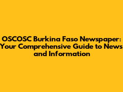 Hey guys! Welcome to your one-stop guide to everything related to the OSCOSC Burkina Faso Newspaper. We'll dive deep into what this newspaper is all about, what it covers, and why it's a super important source of information for anyone interested in Burkina Faso. Whether you're a local, an expat, or just someone curious about the region, we've got you covered. So, let's get started and explore the world of this significant news outlet.