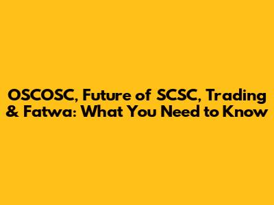 OSCOSC, Future Of SCSC, Trading & Fatwa: What You Need To Know