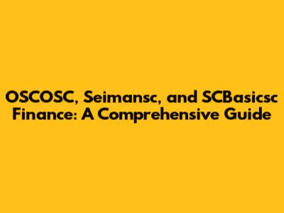 OSCOSC, Seimansc, And SCBasicsc Finance: A Comprehensive Guide