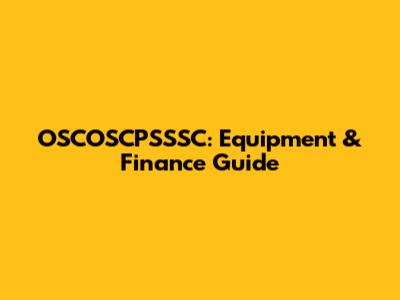 OSCOSCPSSSC: Equipment & Finance Guide