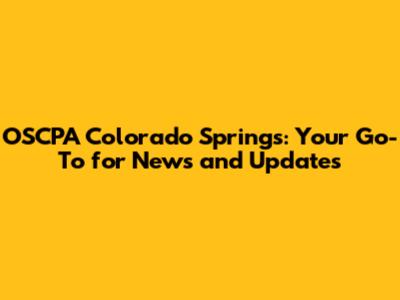 OSCPA Colorado Springs: Latest News And Insights