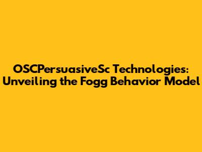 OSCPersuasiveSc Technologies: Understanding Fogg Behavior Model