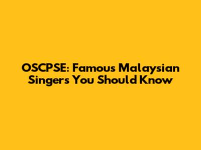 OSCPSE: Famous Malaysian Singers You Should Know