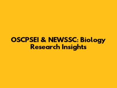 OSCPSEI & NEWSSC: Biology Research Insights
