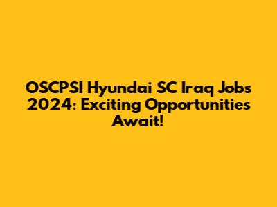 OSCPSI Hyundai SC Iraq Jobs 2024: Opportunities