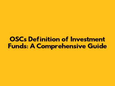 OSC's Investment Fund Definition: What You Need To Know