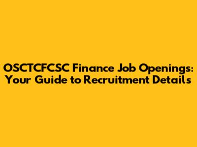 OSCTCFCSC Finance Job Openings: Recruitment Details
