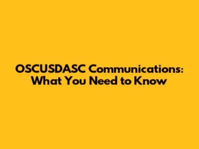 OSCUSDASC Communications: What You Need To Know