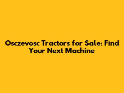 Where to Find Osczevosc Tractors for Sale