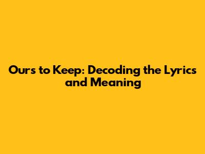 Ours To Keep: Song Meaning And Lyrics Explained