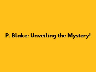 P. Blake: Unveiling The Mystery!