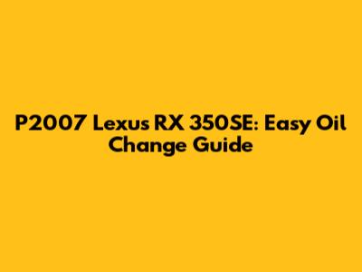 P2007 Lexus RX 350SE: Easy Oil Change Guide
