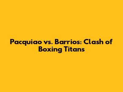 Pacquiao Vs. Barrios: Clash Of Boxing Titans