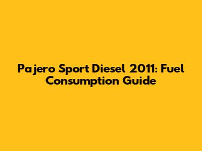 Pajero Sport Diesel 2011: Fuel Consumption Guide