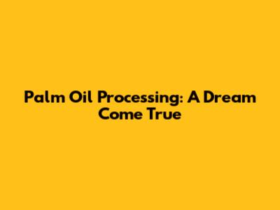 Palm Oil Processing: A Dream Come True