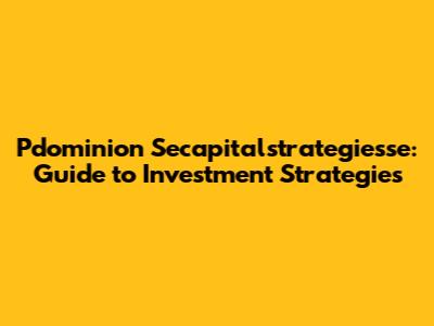 Pdominion Secapitalstrategiesse: Guide To Investment Strategies