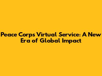 Peace Corps Virtual Service: A New Era Of Global Impact