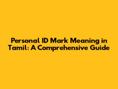 Personal ID Mark Meaning In Tamil: A Comprehensive Guide