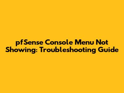 PfSense Console Menu Not Showing: Troubleshooting Guide