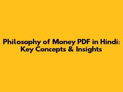 Philosophy Of Money PDF In Hindi: Key Concepts & Insights