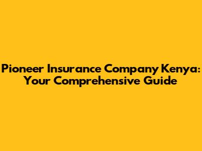 Pioneer Insurance Company Kenya: Your Complete Guide