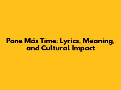Pone Más Time: Lyrics, Meaning, And Cultural Impact