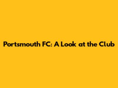Portsmouth FC: A Look At The Club
