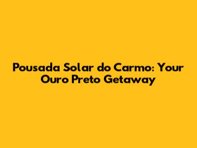 Pousada Solar Do Carmo: Your Ouro Preto Getaway