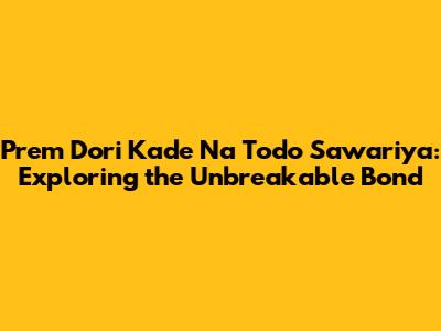 Hey guys! Ever heard the saying, “Prem Dori Kade Na Todo Sawariya?” It's all about the unbreakable bond of love and devotion, especially towards the divine. In this article, we're diving deep into what this means, why it's so important, and how you can apply it to your own life. So, grab a cup of coffee, settle in, and let's explore this beautiful concept together!