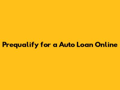 Prequalify For A Auto Loan Online