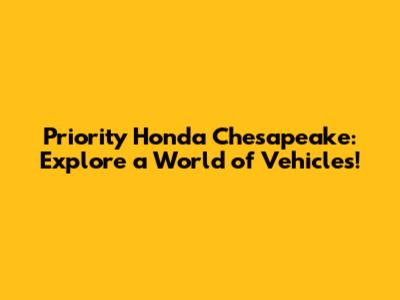 Hey there, car enthusiasts! Let's dive into the awesome world of Priority Honda Chesapeake! If you're on the hunt for a new or used vehicle, you've definitely come to the right place. This place is your one-stop shop for everything Honda, offering a massive selection, super friendly service, and a commitment to making your car-buying experience a breeze. From the moment you step onto their lot to the day you drive off in your dream car, Priority Honda Chesapeake has got your back. They understand that buying a car is a big decision, and they're dedicated to helping you every step of the way. So, buckle up, guys, because we're about to explore what makes Priority Honda Chesapeake such a fantastic choice for your next set of wheels! We will be discussing its offerings, from the latest models to the advantages of choosing Priority, and how they make car shopping an enjoyable experience.