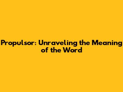Propulsor: Unraveling The Meaning Of The Word